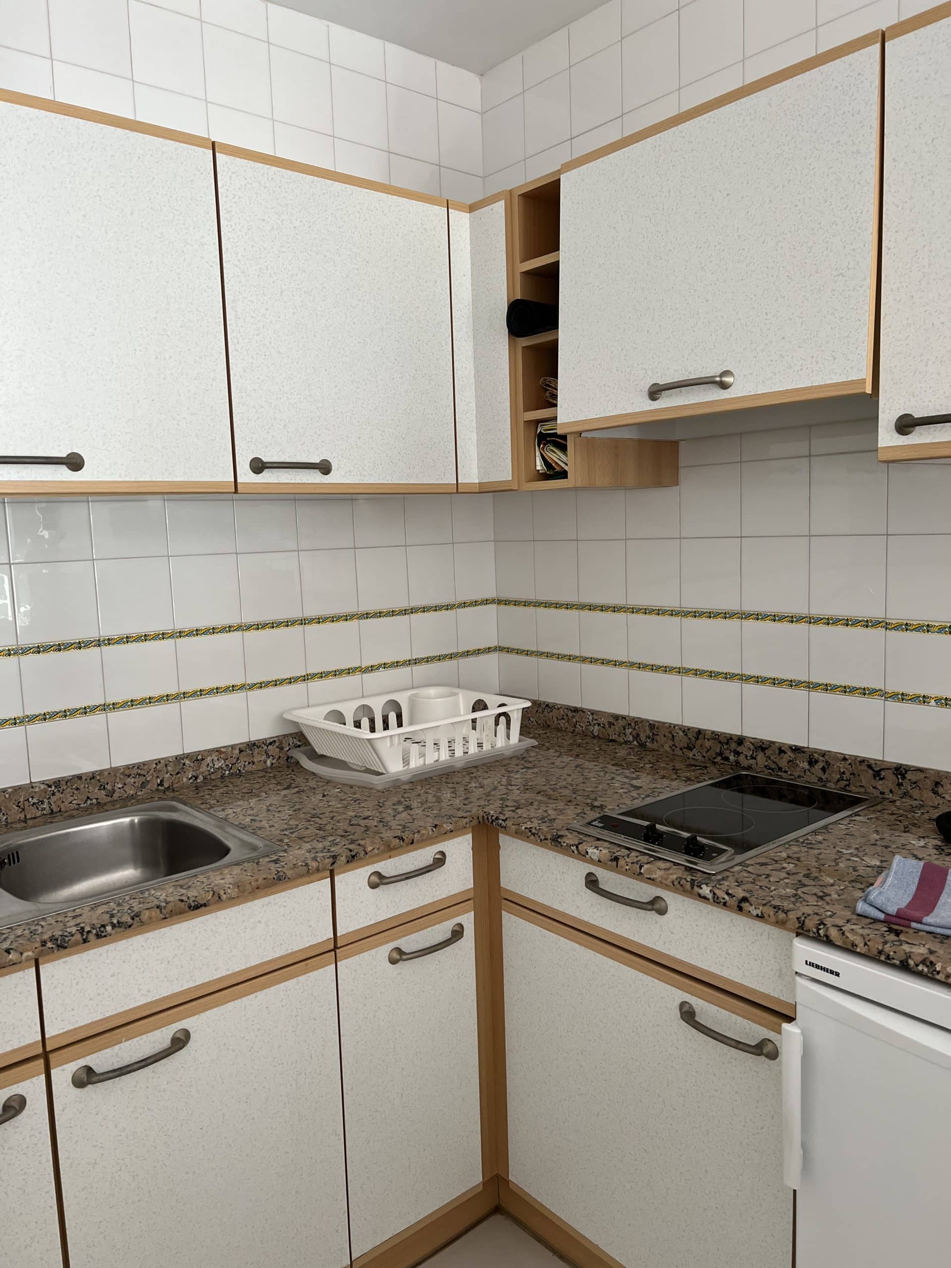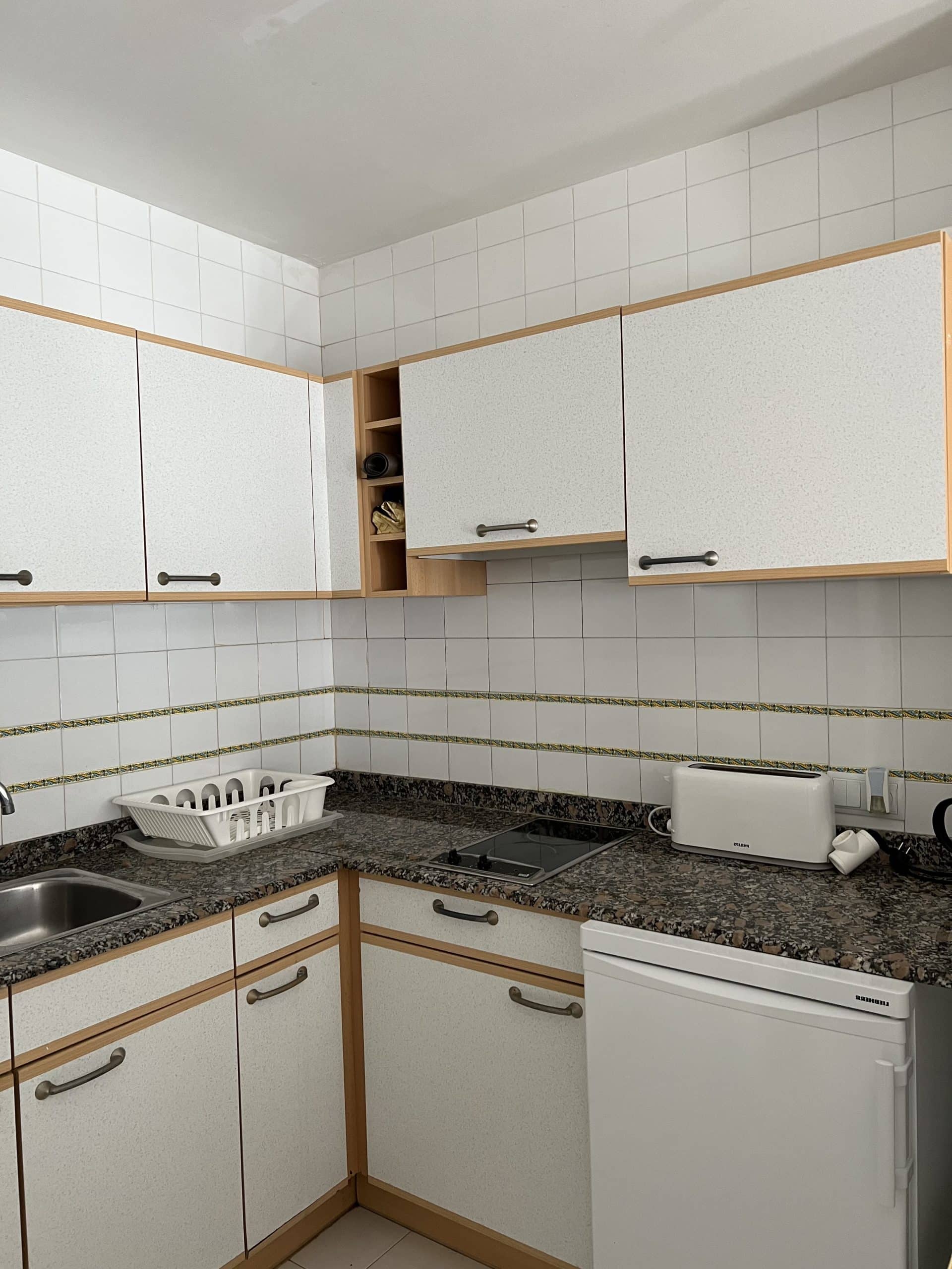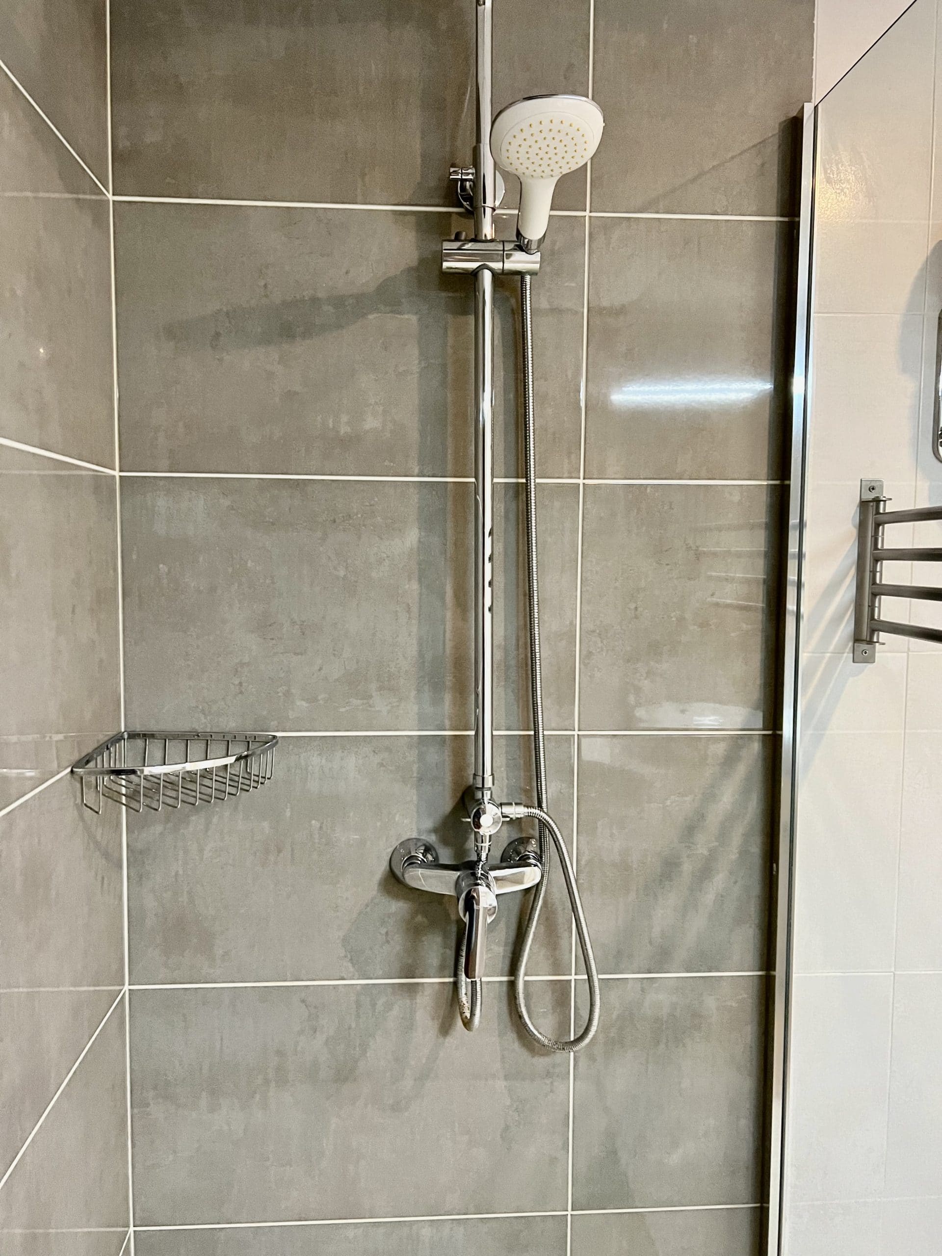 All the apartments have brand new and silent central air conditioning systems. This Two bedroom apartment 301, has fresh and simple furnishings, an open plan living room with a sofa-bed that pulls out into two single beds. There’s also a dining area and kitchen with breakfast bar, a TV with UK channels and free Wi-Fi. We have recently renovated the full bathroom and it now has a shower enclosure. The bed linen, towels, drapes are of high quality four-star Irish cotton. The roomy balcony-terrace is 8 m2 big, it has a table and chairs and it’s a great place for relaxing while enjoying the great weather and the outdoors.