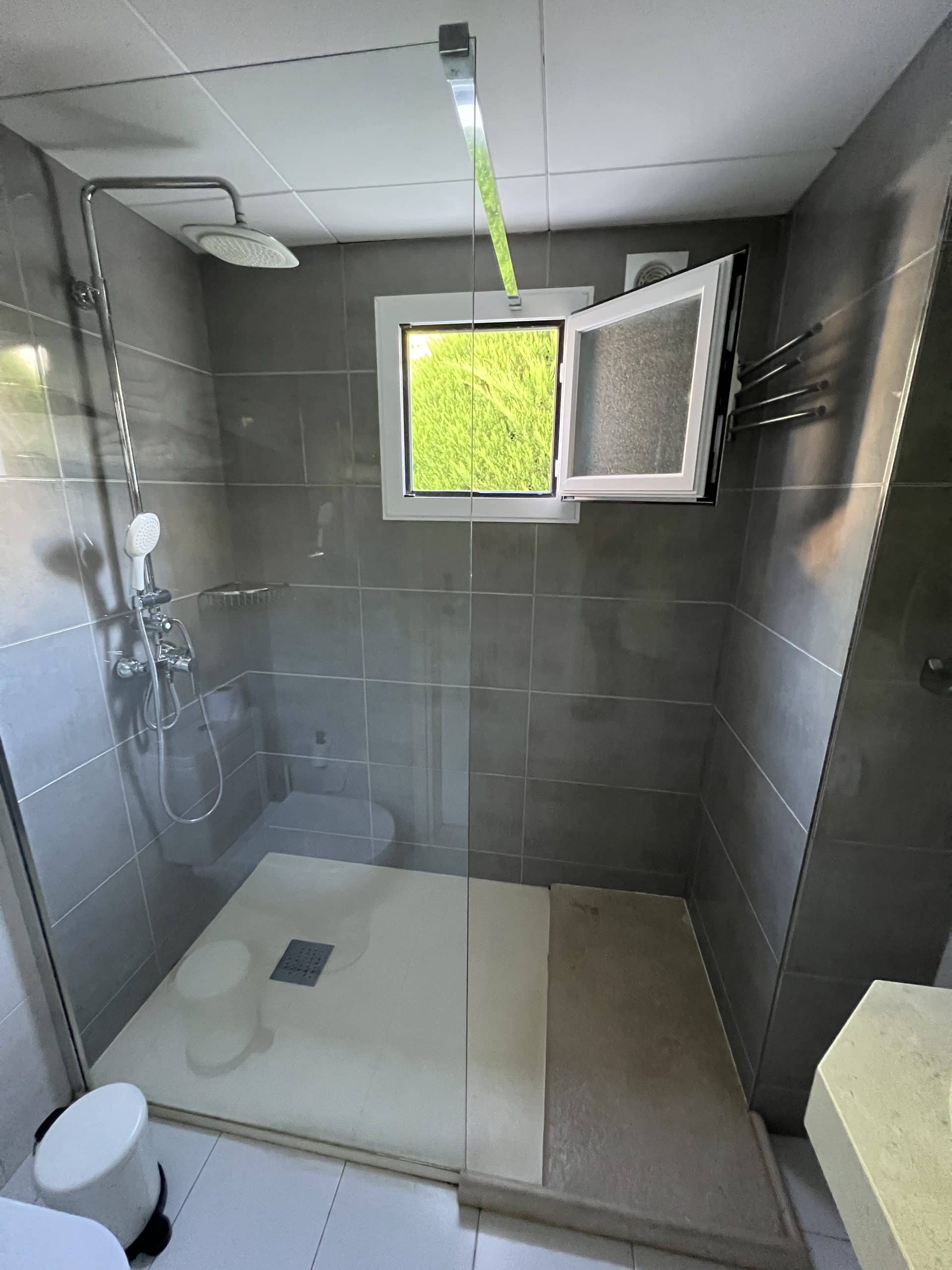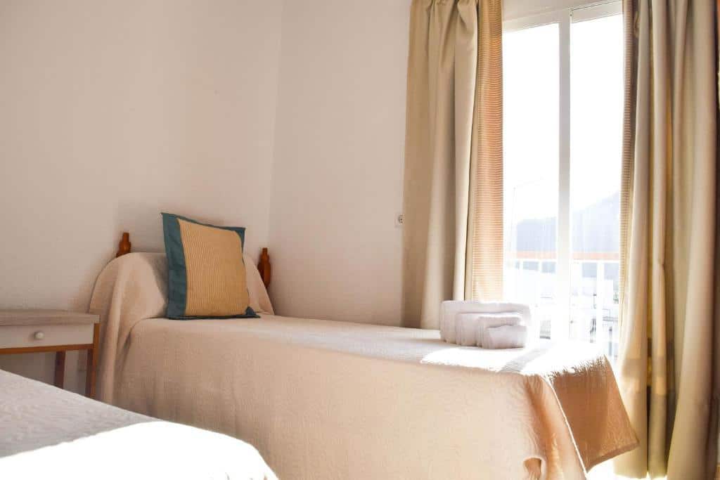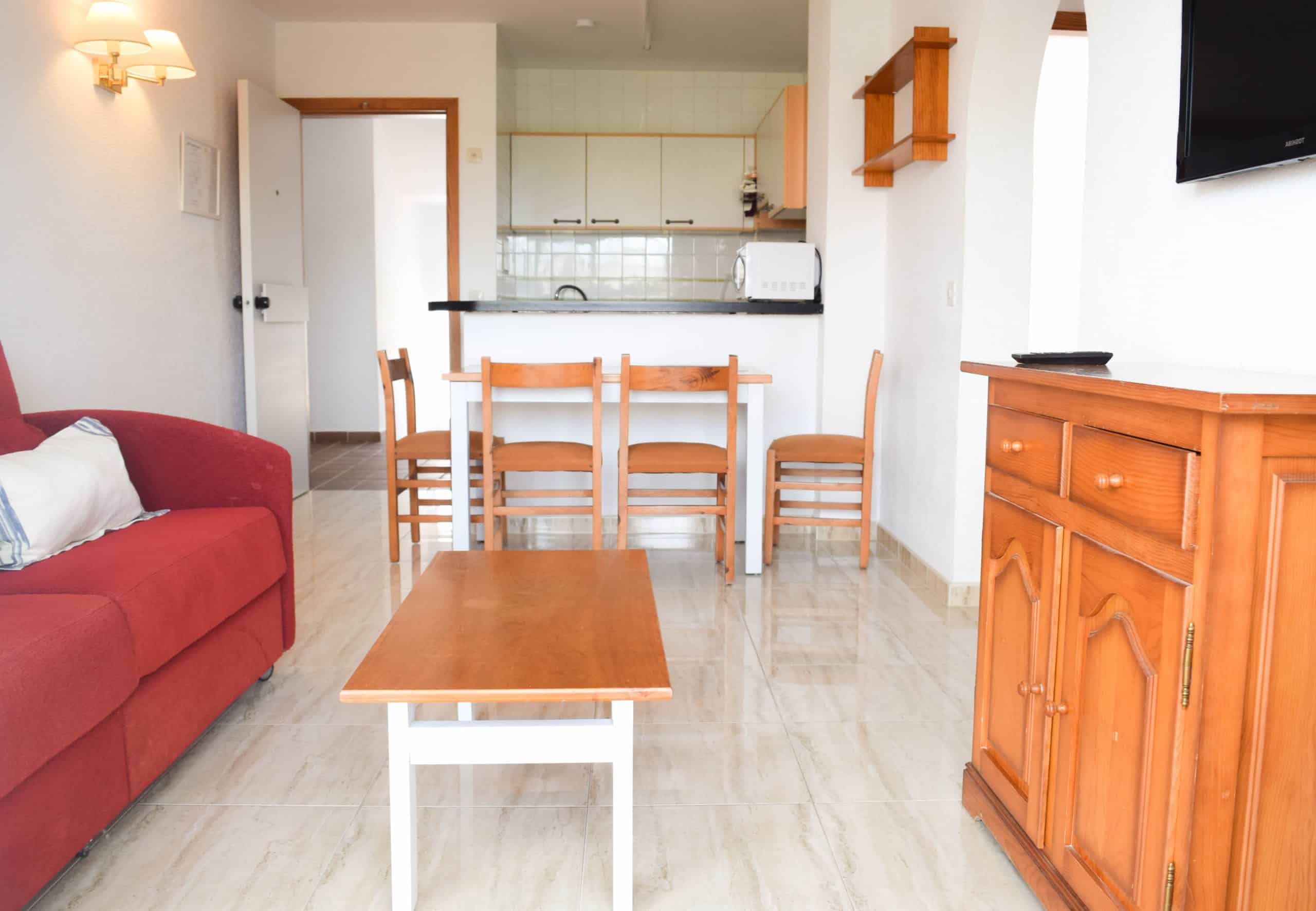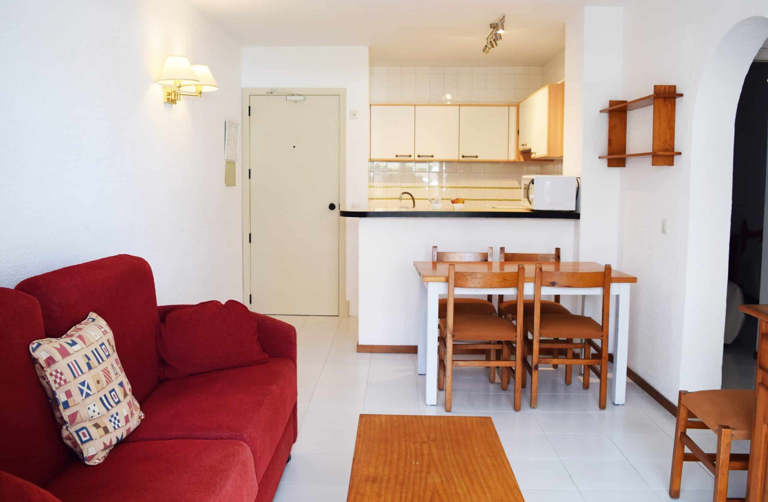 All the apartments have brand new and silent central air conditioning systems. This Two bedroom apartment 301, has fresh and simple furnishings, an open plan living room with a sofa-bed that pulls out into two single beds. There’s also a dining area and kitchen with breakfast bar, a TV with UK channels and free Wi-Fi. We have recently renovated the full bathroom and it now has a shower enclosure. The bed linen, towels, drapes are of high quality four-star Irish cotton. The roomy balcony-terrace is 8 m2 big, it has a table and chairs and it’s a great place for relaxing while enjoying the great weather and the outdoors.